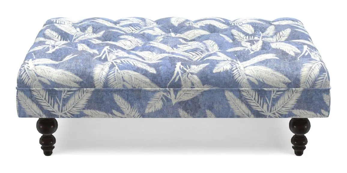 Bedham Bespoke Standard Footstools in RHS Botanicals - Palm Leaf : Indigo
