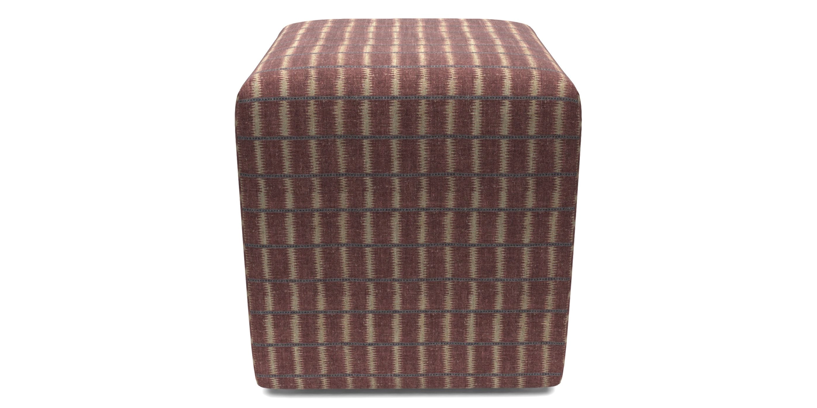 • Cube Bespoke Standard Footstools in V&A Threads of India on Linen - Ikat Mirage : Cardinal