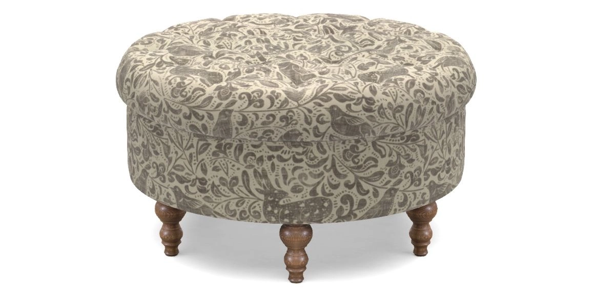 Burford Bespoke Round Footstools in V&A Drawn From Nature - Bird and Rabbit : Brown