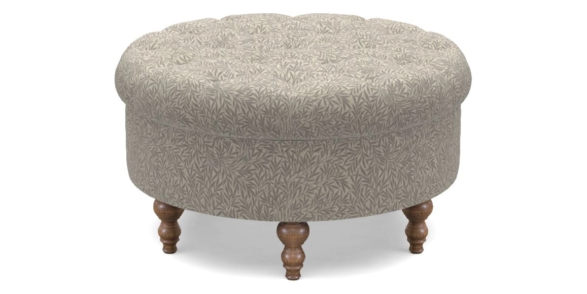 Burford Bespoke Round Footstools in V&A Drawn From Nature - Willow : Grey