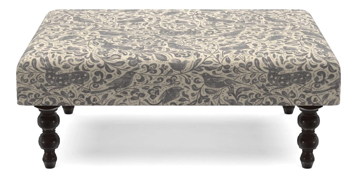 Porthallow Bespoke Footstools A in V&A Drawn From Nature - Bird and Rabbit : Navy